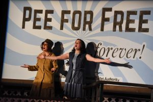 In a Gotham-like city, a terrible water shortage, caused by a 20-year drought, has led to a government-enforced ban on private toilets. The citizens must use public amenities, regulated by a single malevolent company that profits by charging admission for one of humanity’s most basic needs. Amid the people, a hero decides he’s had enough, and plans a revolution to lead them all to freedom! Urinetown is a hilarious musical satire of the legal system, capitalism, social irresponsibility, populism, bureaucracy, corporate mismanagements, municipal bonds and….musical theatre!